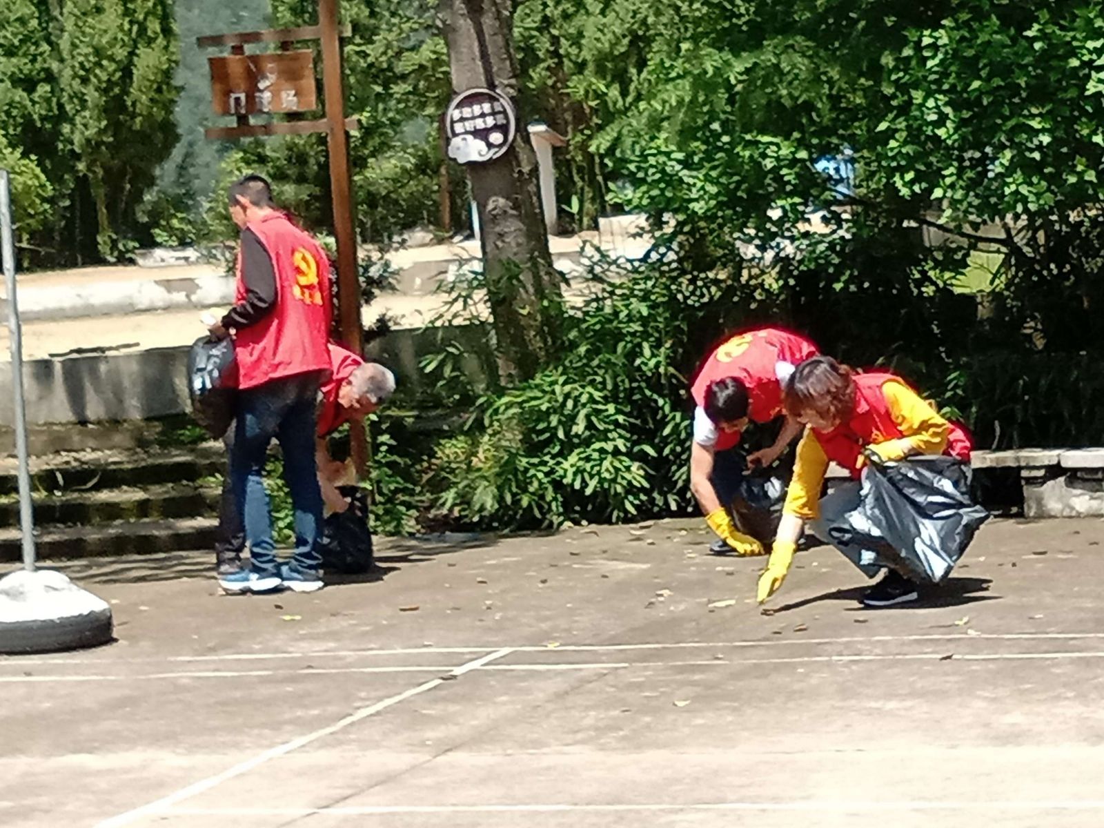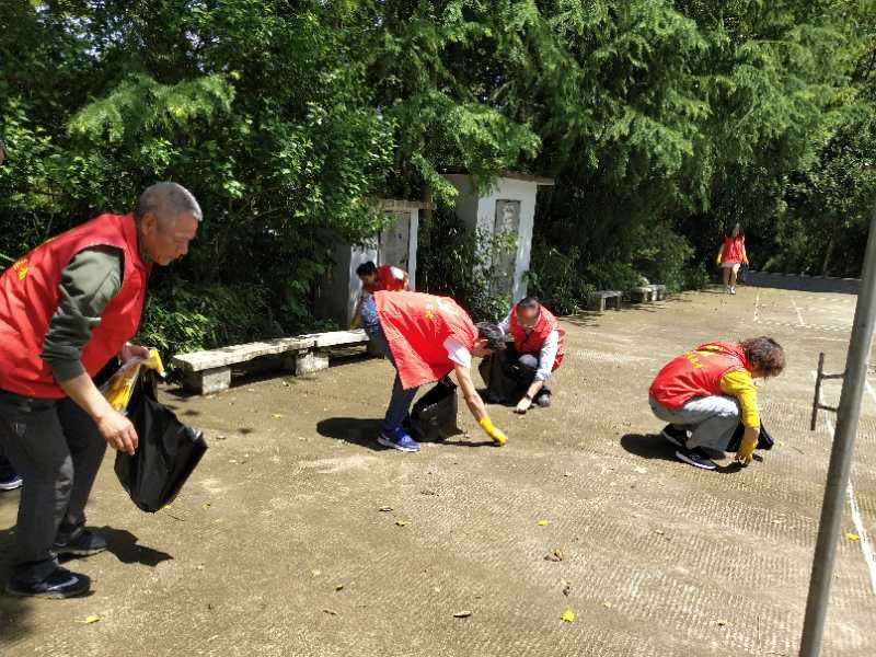 活動(dòng)最后,黨員們?cè)诹沂磕箯V場(chǎng)及周邊拾撿垃圾、撥除雜草。