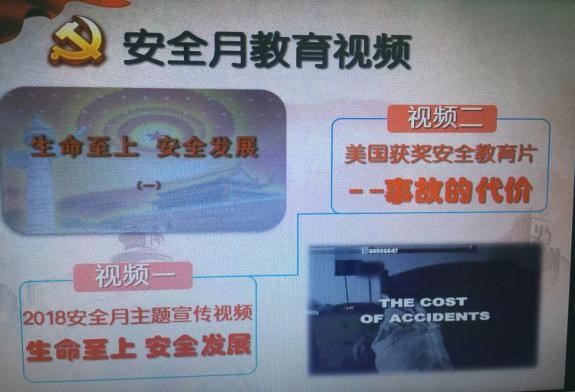 2018年6月,黨支部開展“投身安全月,弘揚生命至上”主題黨日活動?;顒又攸c是深刻認(rèn)識安全對企業(yè)、對家庭、對社會、對每一個人的重要性。要求黨員做安全的先鋒模范。組織播看2018年安全生產(chǎn)宣傳主打視頻:《生命至上,安全發(fā)展》及美國獲獎安全教育微電影《事故的代價》。