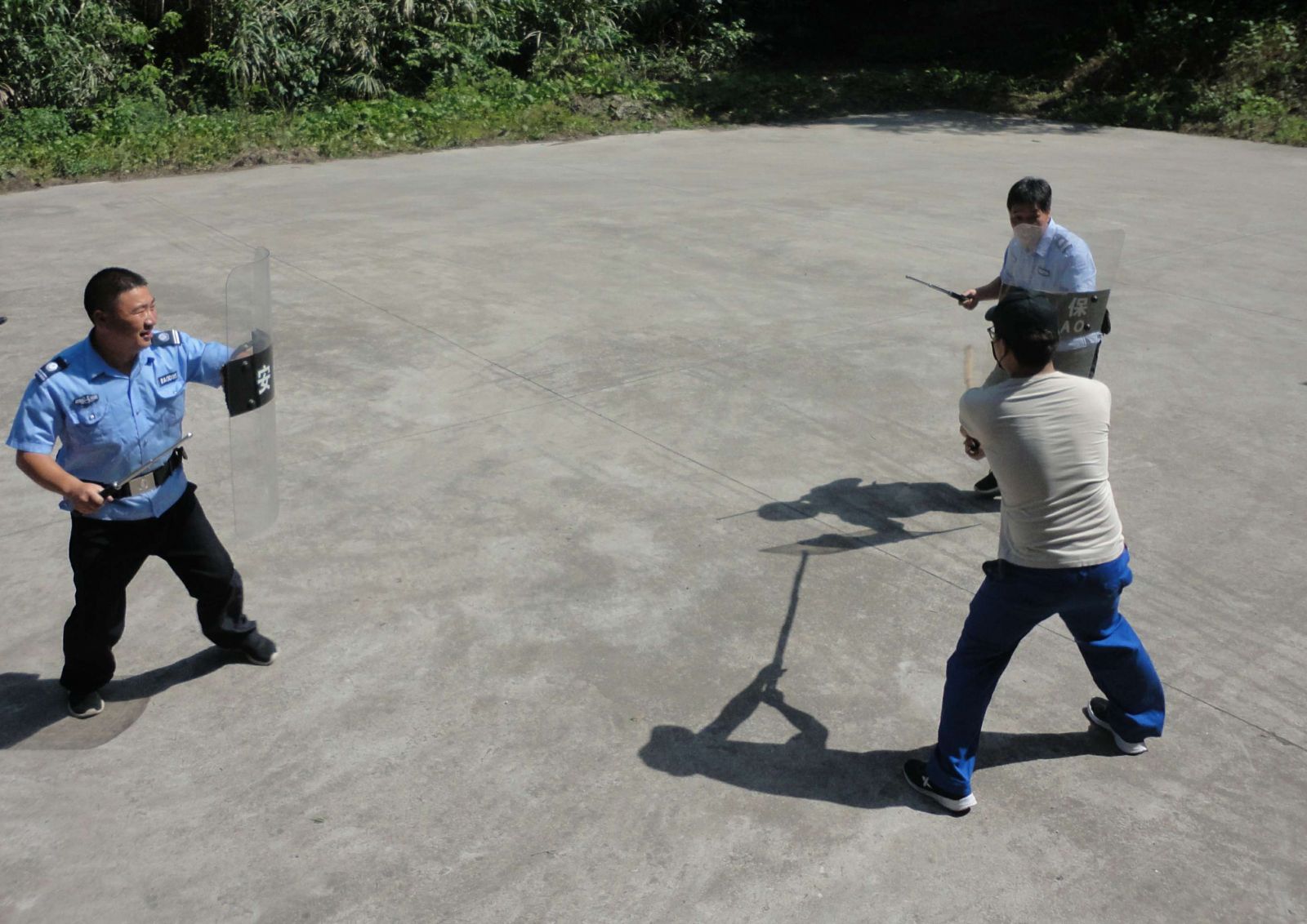 “歹徒”經(jīng)過精心預(yù)謀,在偏僻地段堵劫運(yùn)輸車輛實施搶奪民爆物品,制造恐怖事件。在搶劫過程中遭遇安保人員攔截,并挾持人質(zhì)進(jìn)行對抗,安保人員采用機(jī)智靈活地辦法與歹徒周旋。