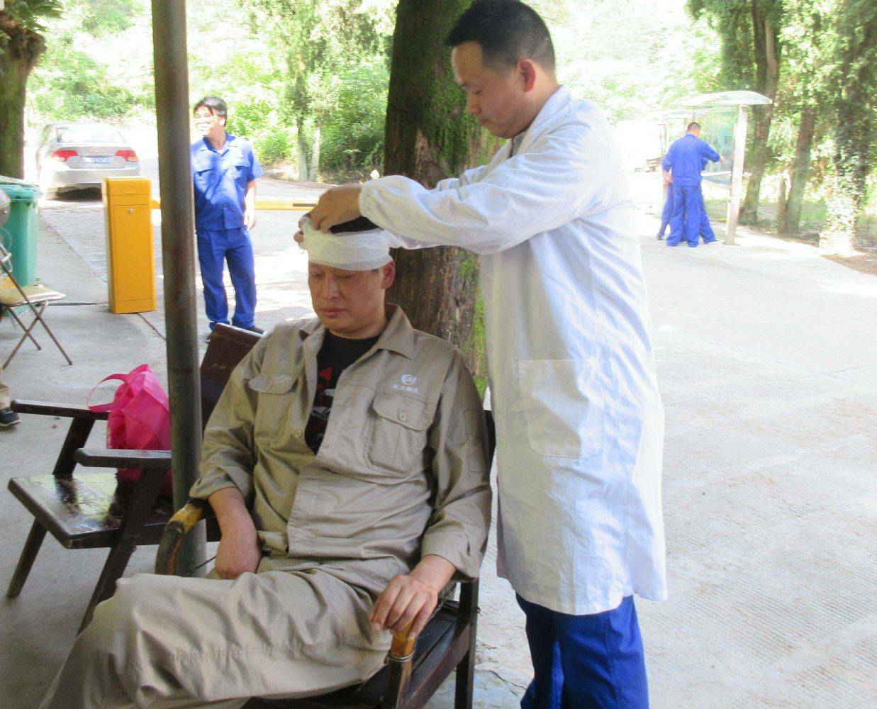 幾分鐘后,公司吳總和玖運(yùn)公司葉總帶領(lǐng)的應(yīng)急救援小隊及云峰派出所警員先后趕到,兩名歹徒被成功制服,帶回派出所。