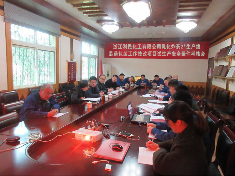浙江利民化工有限公司于2018年3月6日下午1:30分在控股公司會議室召開乳化炸藥2號生產(chǎn)線裝藥包裝工序防傳(殉)爆技術(shù)改造項目試生產(chǎn)安全條件考核會議。公司全體中層以上干部參加此次考核會議,會議由浙江凱特化工有限公司沈副總主持,利民控股公司董事長李峰蒞臨考核會議現(xiàn)場。