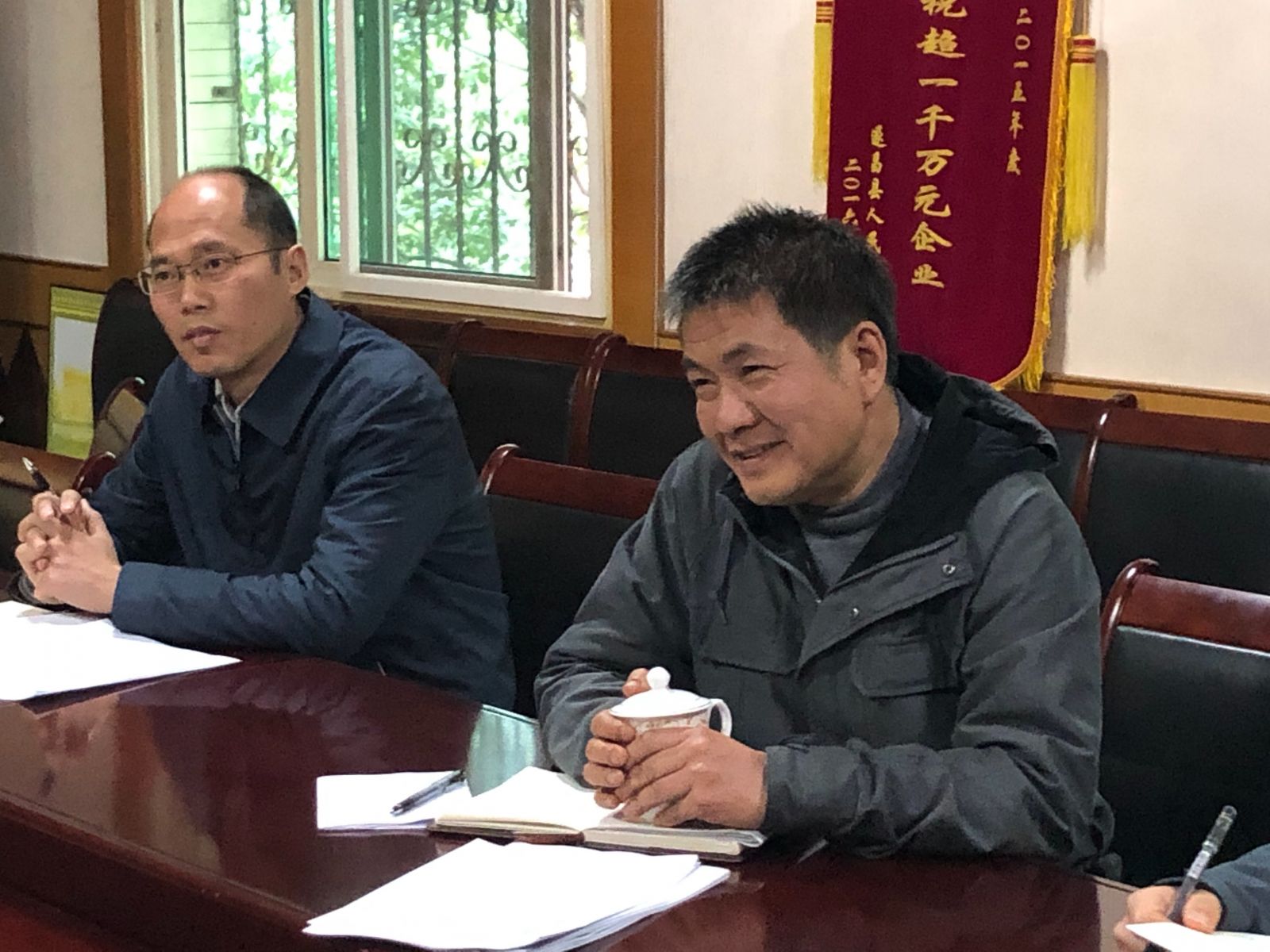 2019年4月2日下午,遂昌縣人大尹建中主任攜縣經(jīng)商局局長吳華軍等相關(guān)人員走訪浙江利民控股股份有限公司。于控股集團(tuán)會議室召開調(diào)研座談會。公司董事長李峰、財務(wù)總監(jiān)翟水根、副總經(jīng)理濮發(fā)祥、辦公室主任李軍一同參加交流。