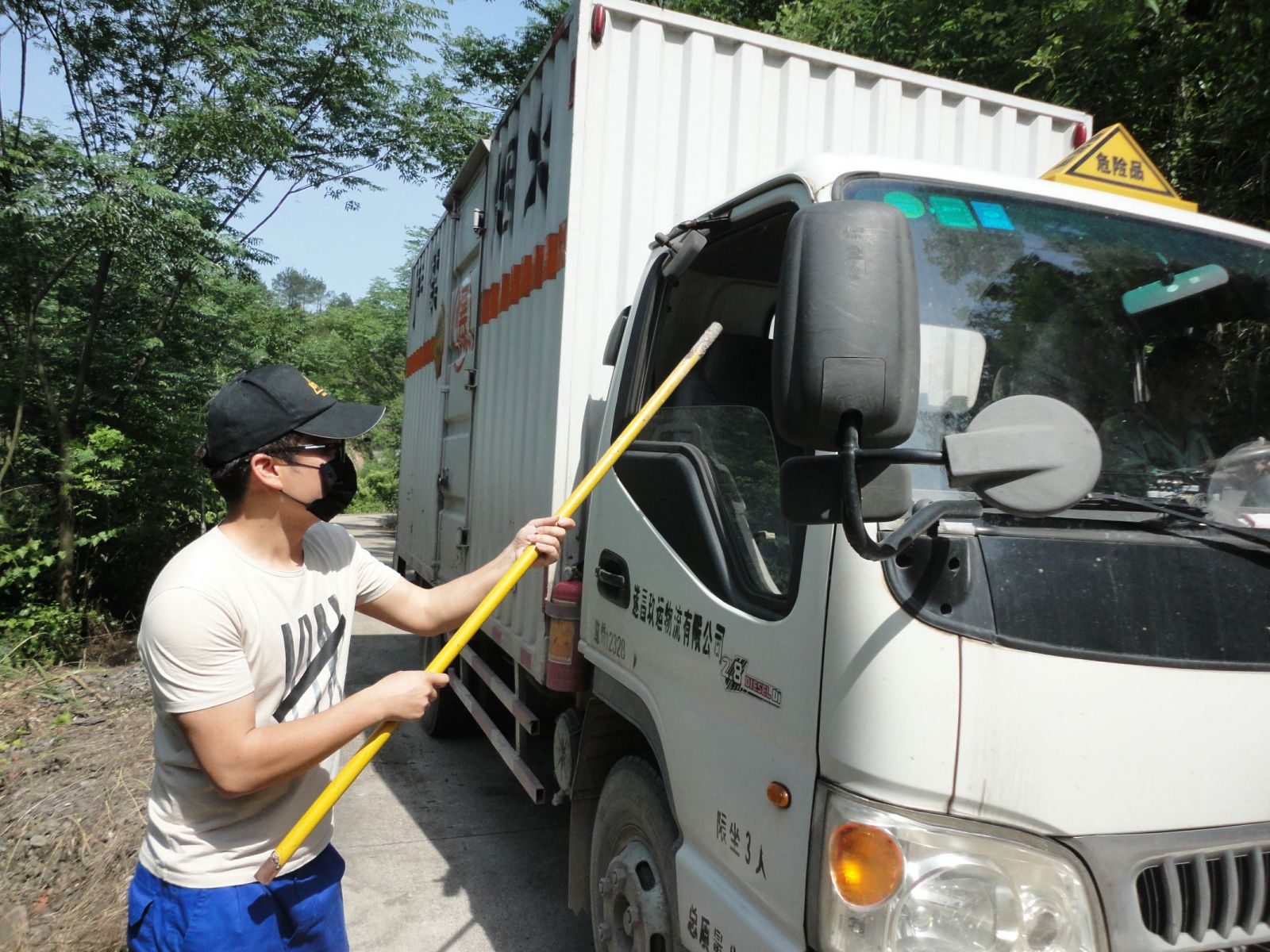 5月24日下午14時,民爆物品進(jìn)庫車行駛至總庫區(qū)某處偏僻地段,被前面一輛面包車及道路中間的障礙物擋住去路,一名押運(yùn)員下車查看情況,突然兩名蒙面“歹徒”持刀沖出,開始了預(yù)謀已久的搶劫行動……